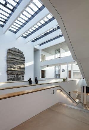 2018 erhielt die Kunsthalle Mannheim einen modernen Neubau, dessen Kern ein imposantes Atrium bildet. Vom Lichtatrium aus zweigen Passagen und Gassen in alle Richtungen ab und führen über Balkone, Brücken und Terrassen hin zu den Meisterwerken, die in sieben Ausstellungshäusern in Szene gesetzt werden. Ganz oben befindet sich ein Dachgarten mit schönem Blick auf den benachbarten Wasserturm, den Friedrichsplatz und den Rosengarten.