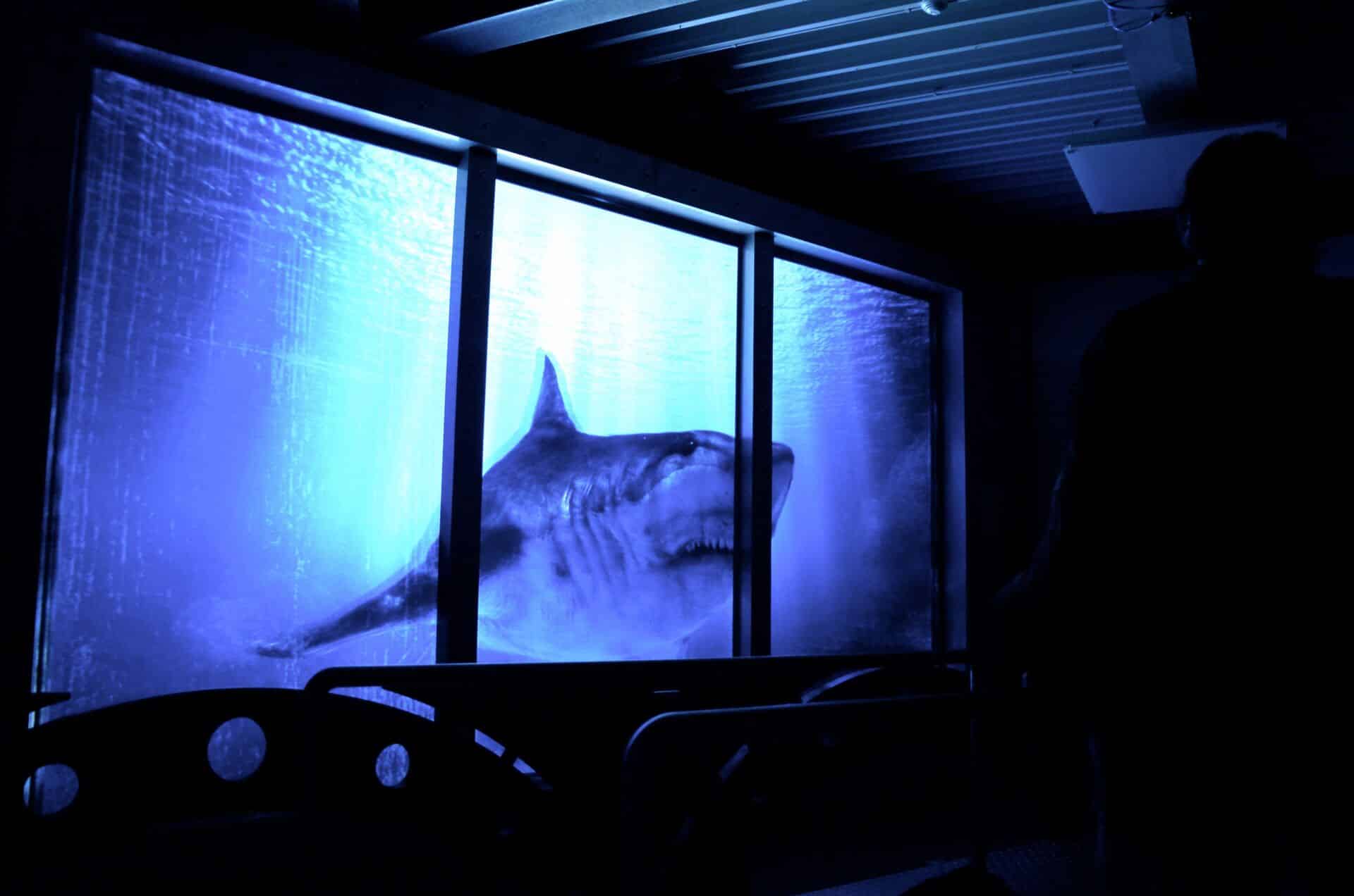 Megalodon: Seine Zähne waren bis zu 18 cm lang. Er konnte bis zu zehnmal stärker zubeißen als der Weiße Hai: der 100 Tonnen schwere Riesenhai Megalodon. Besucherinnen und Besucher stehen der Animationsshow um den größten jemals existierenden Hai Auge in Auge gegenüber. Lediglich eine Glasscheibe trennt vom 18 Meter großen „Killer“, der bis vor fünf Millionen Jahren lebte.
