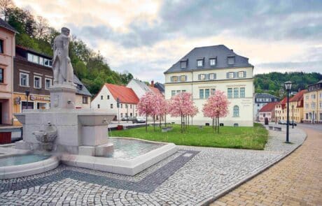 - Uhrenmuseum außen, Vorplatz: © Stiftung Deutsches Uhrenmuseum Glashütte/Foto: René Gaens