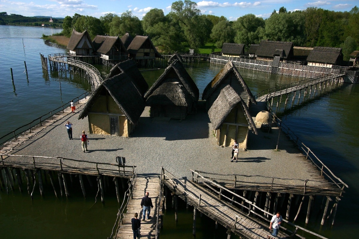 Wer einen Einblick in das Leben der Pfahlbaubewohner vor 7000 Jahren bekommen möchte, der sollte das Pfahlbaumuseum in Unteruhldingen am Bodensee besuchen. Das archäologische Freilichtmuseum präsentiert Funde und Nachbauten von über 20 Pfahldörfern aus der Stein- und Bronzezeit. 1922 wurde das Museum mit der Errichtung der ersten beiden Steinzeithäuser „Riedschachen“ eröffnet; schon im ersten Jahr kamen 6000 Besucher. Die sechs Pfahlbauten „Sipplingen“ (3500 v.Chr.) sind von einer Palisade umgeben und entstanden in den Jahren 1938 bis 1940. Das bronzezeitliche Dorf „Unteruhldingen-Stollenwiesen“ wurde zwischen 1999 und 2002 aus fünf Gebäuden erbaut. Auf 400 qm Fläche kann man hier 27 Figuren mit ihrer prähistorischen Ausrüstung, die Einblicke in die Bereiche Wohnen, Handwerk, Kult und Religion sowie Umwelt und Tiere geben, besichtigen.
