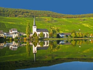 Der Mosel-Radweg führt auf rund 250 km vom Dreiländereck in Perl bis zur Mündung in den Rhein in Koblenz und gehört zu den beliebtesten Flussradrouten in Deutschland.