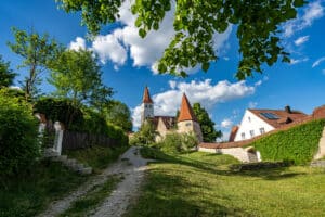 5. Etappe: Wassertrüdingen – Schillingsfürst (62 km): Durch die historische Altstadt von Wassertrüdingen führt die fünfte Etappe zunächst an die Wörnitz, die die ersten Kilometer durch die Landschaft des Romantischen Frankens begleitet. In Ruffenhofen gibt das „Limeseum“ Einblick in die römische Geschichte der Gegend. Nächstes Highlight auf der Strecke ist Dinkelsbühl mit seinen renovierten Fachwerk- und Bürgerhäusern, dann geht es weiter nach Feuchtwangen, dem „Festsaal Frankens“. Über Kloster Sulz ist bereits das Etappenziel Schillingsfürst mit dem gleichnamigen Barockschloss erreicht.