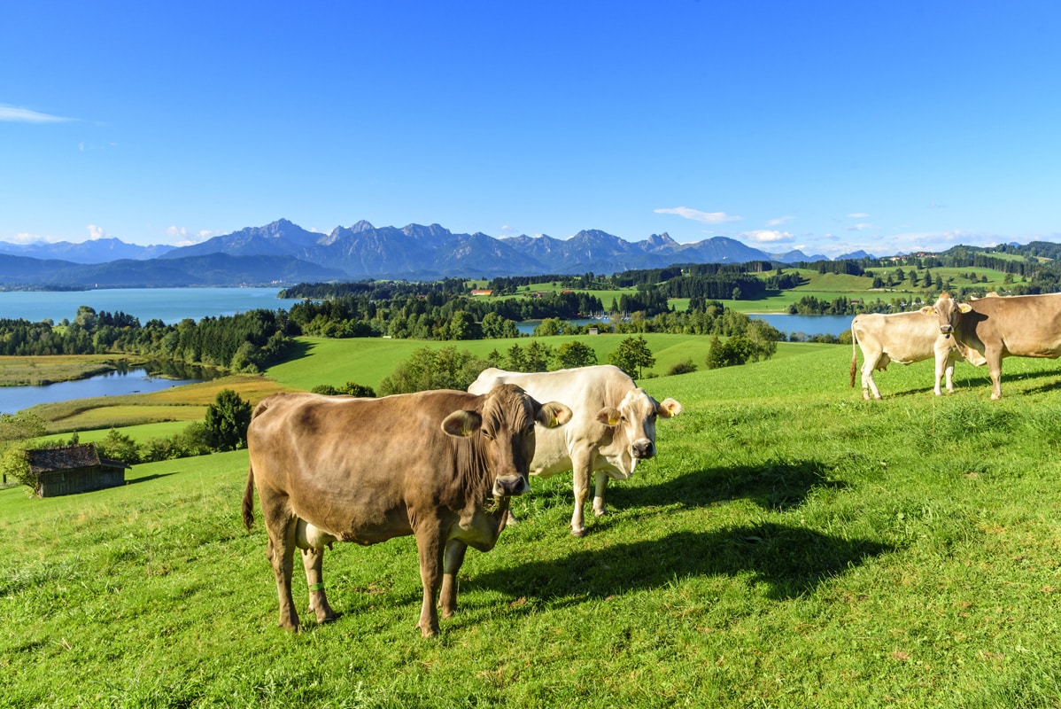 Saftige grüne Wiesen, gesunde Bergluft, kleine Weiler – die malerische Landschaft des Ostallgäus lädt zu erholsamen Stunden in grüner Natur. Doch nicht nur für seine Naturlandschaft ist das Allgäu berühmt – auch seine Käsespezialitäten sind weit über die Grenzen der Region hinaus bekannt. Auf dem Emmentaler-Radweg können Käseliebhaber viel über leckeren Allgäuer Käse erfahren, bei der Herstellung in einer Käserei zusehen und ihn selbstverständlich auch probieren. Die Tour führt durch herrliche Naturlandschaften und kleine Weiler, in denen noch das ursprüngliche Allgäuer Landleben vorherrscht. Besonders gut ist der Emmentaler-Radweg für Familien mit Kinder geeignet – Sennerei-Besichtigungen, Käseherstellung und Verköstigungen machen die Tour auch für Kinder zu einem besonderen Ausflug. Zudem kann man sich an heißen Sommertagen am Schwaltenweiher etwas abkühlen, einem beliebten Badesee. Da der Radweg ein Rundkurs ist, ist der Einstieg überall möglich – wer mit öffentlichen Verkehrsmitteln unterwegs ist, startet die Tour vom Füssener Bahn- und Busbahnhof aus in Richtung Hopfen am See. Besonders günstig als Stadtpunkt der Tour ist auch das Landhotel Seeg geeignet.