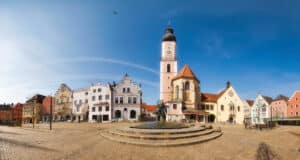 Highlights auf dieser Etappe: Historischer Marktplatz mit kunstvollem Marktbrunnen, spätgotisches Rathaus, Pfarrkirche St. Jakob, Biertor, Straubinger Turm in Cham