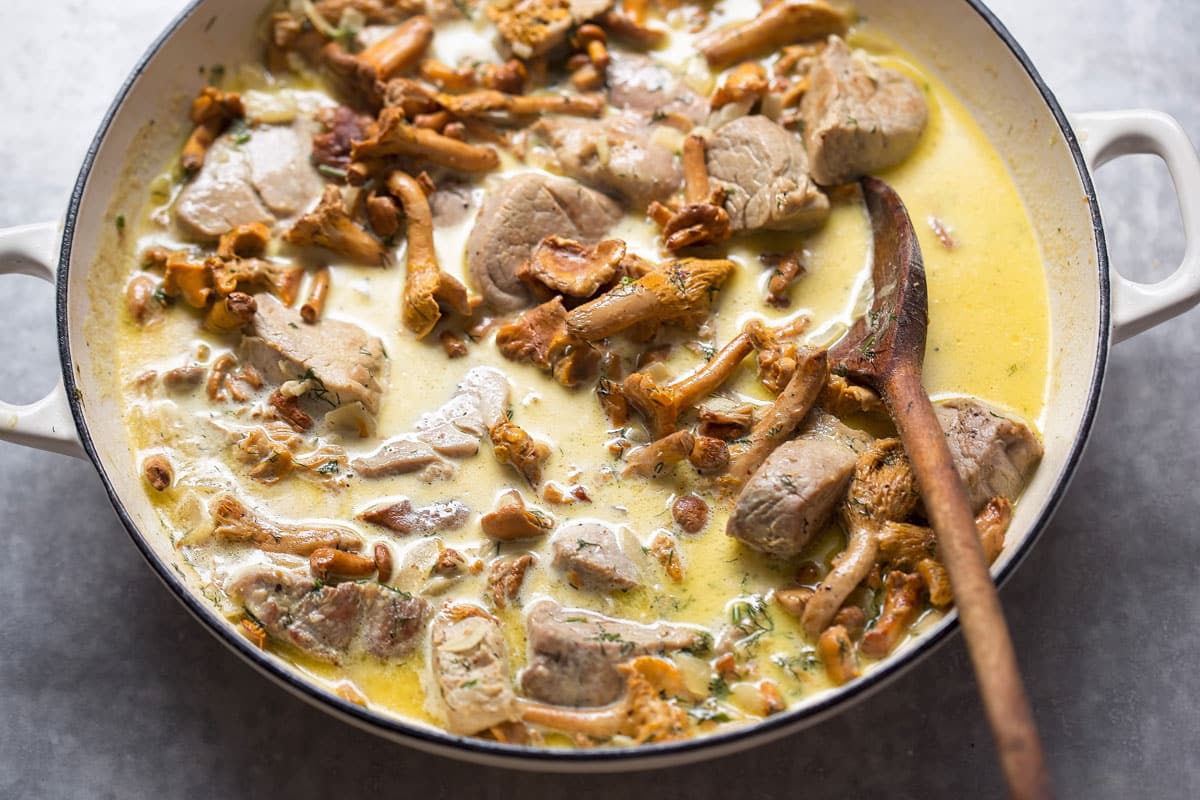 Wer die Pilze in Kombination mit Schweinegeschnetzeltem probieren möchte, der stößt beim vorliegenden Gericht auf einen echten Klassiker. Empfehlenswert hierzu ist ein Gurkensalat, der mit Joghurt verfeinert wird.
