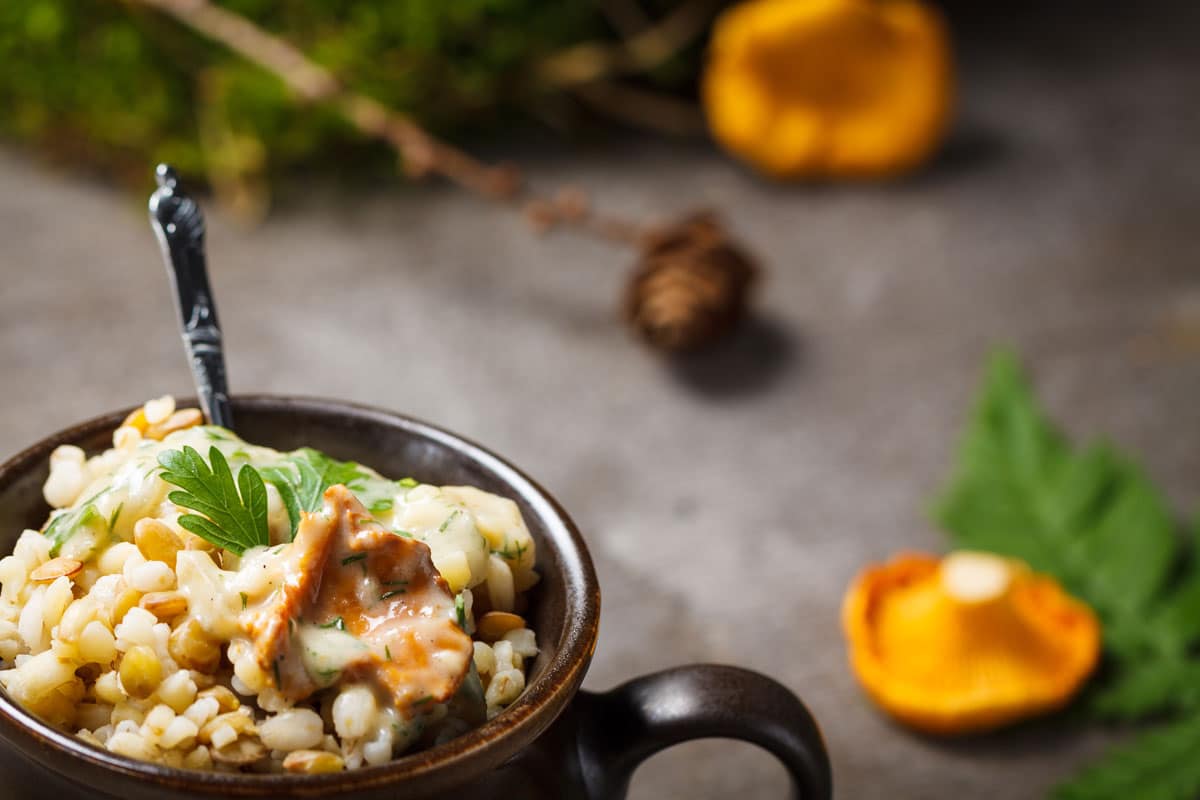 Das Risotto mit Eierschwammerln, Käse und Sahne kommt ursprünglich aus Italien. Die Sahne verleiht dem Risotto eine cremige Note und der Käse ummantelt den besonders einzigartigen Geschmack der frischen Schwammerln.