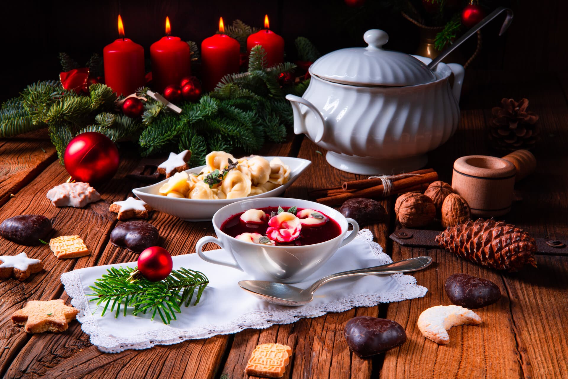 Auch in Polen gehört Weihnachten zu den wichtigsten Feiertagen des Jahres. Hier steht traditionell das große Weihnachtsessen im Mittelpunkt, das aus zwölf unterschiedlichen, fleischlosen Gerichten besteht, darunter Pierogi, die bekannten gefüllten Pasteten, Rote-Bete-Suppe, Rollmops und Mohnrolle als Nachtisch. Die Anzahl der verschiedenen Gerichte entspricht der Anzahl der Apostel. Das Festessen beginnt erst, wenn sich der erste Stern am Himmel zeigt. Eine weitere Tradition des polnischen Festessens zu Weihnachten ist der Brauch, immer für eine Person mehr einzudecken – einerseits gedenkt man so der Verstorbenen, die nicht anwesend sein können, andererseits zeugt diese Geste von der großen polnischen Gastfreundschaft. So ist man vorbereitet, falls ein bedürftiger Mensch an die Tür klopft – ähnlich wie Maria und Josef in der Weihnachtsgeschichte.