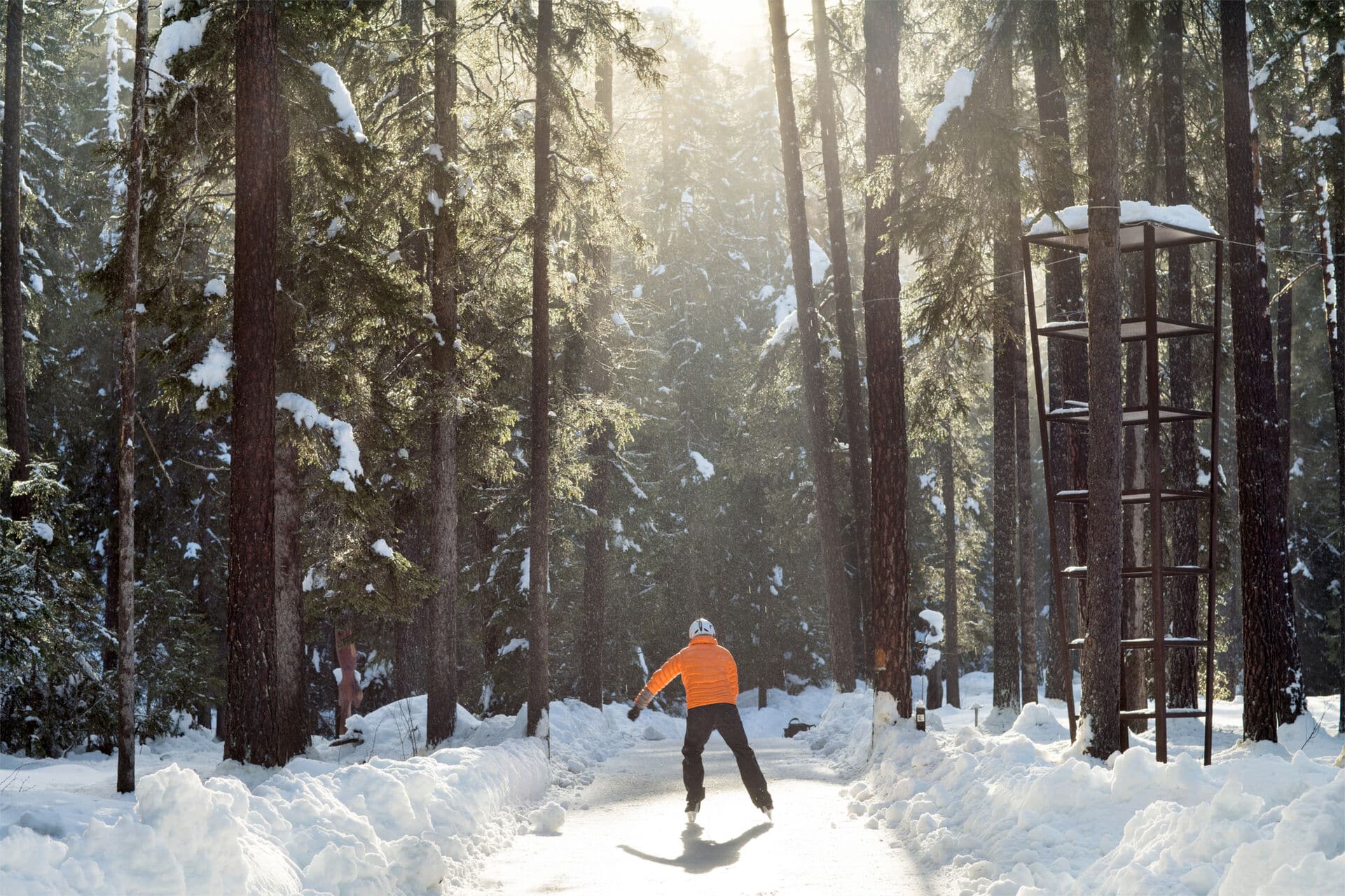 Der Eisweg Engadin schlängelt sich im Winter auf rund drei Kilometern Länge durch den märchenhaften Wald des Unterengadins und ist einer der einzigartigsten Wege der Region. Nahe den Dörfern Scuol und Sent folgt der Weg dem Inn und schlängelt sich durch den Wald zum Ausgangspunkt zurück. Jeden Winter wird die Schlittschuhstrecke wieder neu angelegt, sobald das Wetter es erlaubt und es frostig genug ist. Der Weg wird regelmäßig gepflegt und bleibt dadurch schön glatt, auch wenn er den Konturen des Bodens folgt. Der Eisweg Engadin verspricht so ein einmaliges Outdoor-Schlittschuherlebnis.