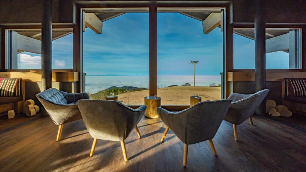 Seit Ende 2018 hat die Hornisgrinde eine neue Attraktion zu bieten: die Grinde-Hütte auf 1155 m bietet nicht nur kulinarische Gaumenfreuden und regionaltypische Gastlichkeit, sondern auch herrliche Panoramablicke über den Schwarzwald.