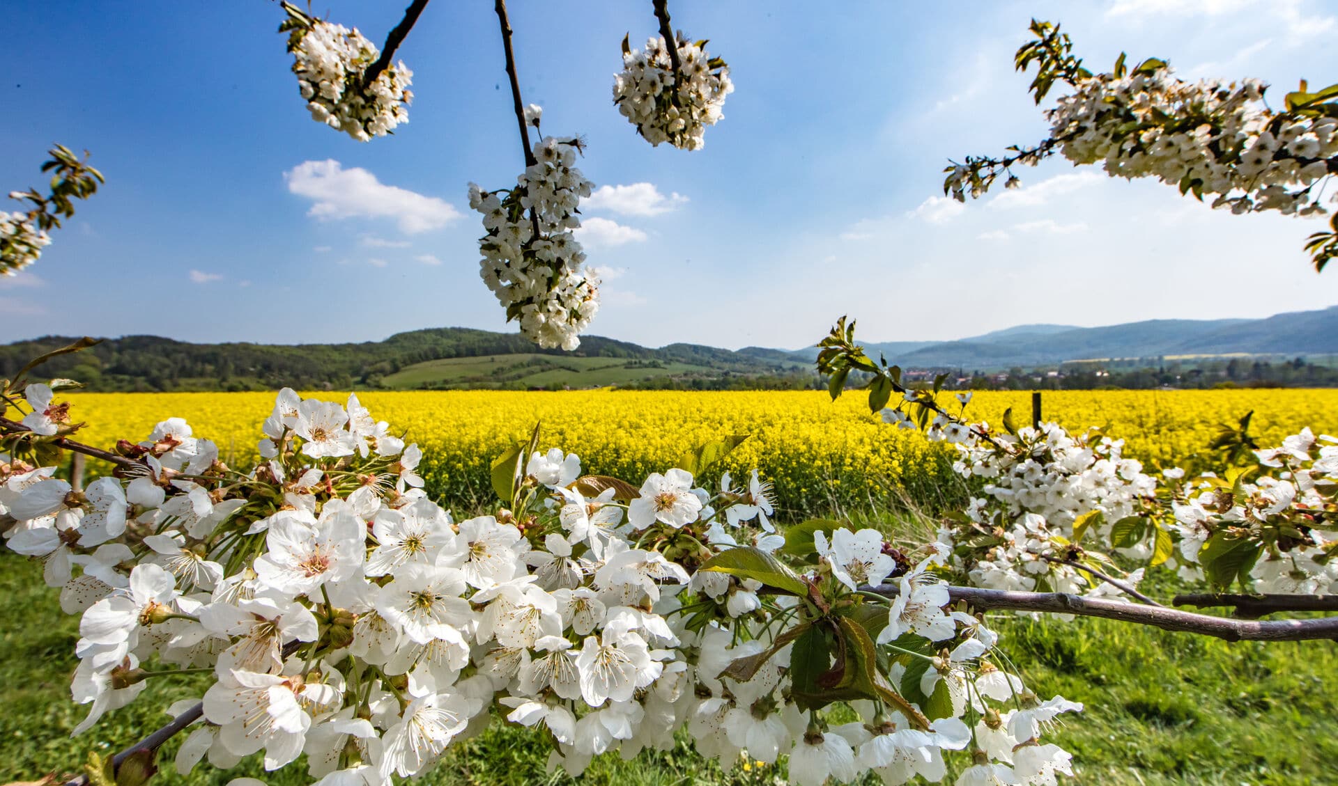 Ein weiteres Ziel für Blütenfans in Hessen ist Witzenhausen: Jedes Jahr von der 2. Aprilhälfte bis Anfang Mai verwandelt sich die Landschaft rund um das Fachwerkstädtchen in ein strahlend weißes Blütenmeer aus über 100.000 Kirschbäumen. Die Region ist auch als Kirschenland bekannt und liegt in der GrimmHeimat NordHessen. Der Kirschenanbau wird hier seit über 100 Jahren betrieben. Erkunden kann man das Blütenmeer auf neu eingerichteten Wander- und Radwegen, aber auch auf den klassischen Wegen wie auf dem Werratal-Radweg oder dem Werra-Burgen-Steig. Zur Erntezeit der roten Früchte lohnt sich ebenfalls ein Besuch in Witzenhausen, denn dann findet hier ein großes Kirschenfest statt, die Kesperkirmes. Auf Parkplätzen und Wochenmärkten kann man dann die erntefrischen Witzenhäuser Kirschen kaufen.