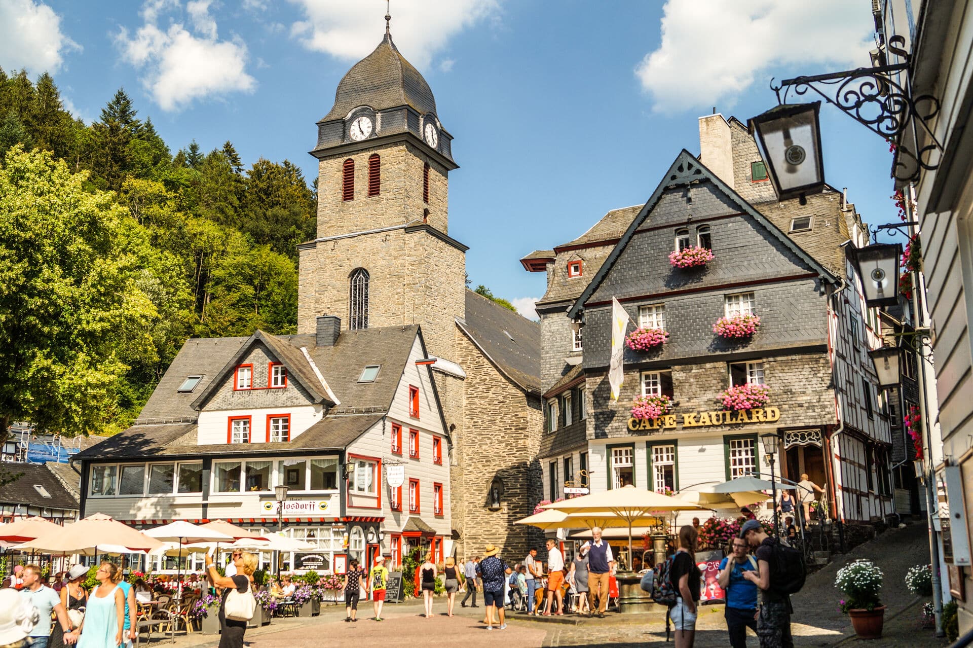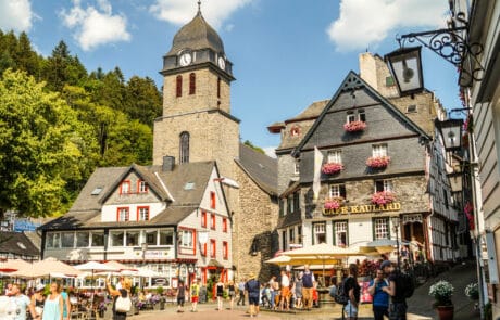 Monschau liegt im Rurtal und gehört zu den beliebtesten Touristenzielen der Eifel: Die historische Altstadt mit ihren rund 300 denkmalgeschützten mittelalterlichen Fachwerkhäusern lädt ein zum Bummeln, Shoppen und Genießen.