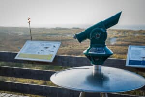 Salzwiesen und Watt prägen die artenreiche Natur Langeoogs – große Teile stehen unter Schutz und dürfen nur im Rahmen von Führungen betreten werden, die unter anderem am Vogelwärterhaus beginnen. Das Vogelwärterhaus zeigt übrigens eine multimediale Ausstellung über die Vogelwelt und bietet einen guten Blick auf die umliegenden Vogelkolonien. Wer gerne selbst loszieht, der kann die Insel auf zwei Lehrpfaden erkunden. Am Osterhook befindet sich eine Plattform mit Infotafeln und Fernrohr – ein idealer Platz, um Vögel oder mit etwas Glück auch Seehunde zu beobachten. Auch der zweite Naturpfad im äußersten Südwesten der Insel hat eine Aussichtsplattform zu bieten: Das Flinthörn ist ein Fluthaken, der sich im Laufe der Jahrhunderte durch Sandablagerungen gebildet hat. Das Gebiet ist ein bedeutender Brut- und Rastplatz für zahlreiche Wat- und Wasservögel, die man besonders im Herbst gut beobachten kann.