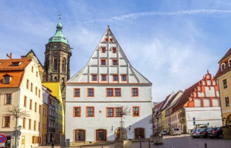Ein weltbekannter Marktplatz, wunderschöne kleine Läden, Cafés und Restaurants, ein geselliges Kulturleben und eine ideale Lage zur Sächsischen Schweiz und nach Dresden machen Pirna zu einem idealen Ausflugsziel in Sachsen. Die reizvolle historische Altstadt mit ihren prachtvollen Bürgerhäusern zählt zu den Highlights in Pirna – von Kriegszerstörungen weitgehend verschont geblieben, finden sich hier noch heute interessante Details, reich verzierte Giebel sowie kunstvolle Erker und Sitznischenportale aus Sandstein an jeder Ecke. Der Marktplatz ist übrigens weltbekannt: 1853 wurde er von dem venezianischen Maler Bernardo Bellotto, besser bekannt als Canaletto, auf Leinwand gebannt. Der Vedutenmaler weilte von 1753 bis 1755 in Pirna und fertigte insgesamt elf Ansichten der Stadt, die berühmteste ist der Marktplatz zu Pirna, der jedes Jahr im April mit Laiendarstellern als „Lebendiges Canalettobild“ nachgestellt wird. Zu sehen sind das Rathaus, das Canalettohaus, die Stadtkirche St. Marien und das Schloss Sonnenstein hoch über der Stadt.