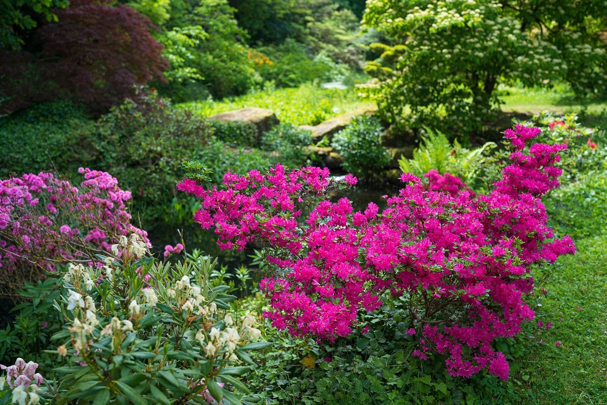 - leuchtende, blühende Rhododren im Landschaftspark Schloß Dennenlohe: © JM Soedher - stock.adobe.com