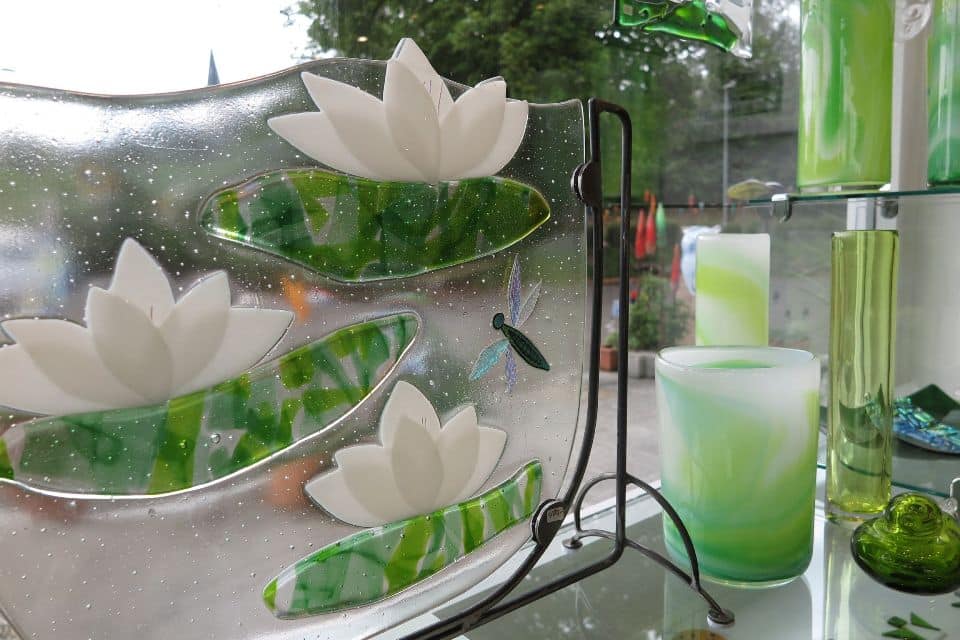 An der Badischen Weinstraße liegt das Doppeldorf Ballrechten-Dottingen. Direkt am Verkehrskreisel, der Ballrechten mit Dottingen verbindet, haben die Glaskünstler Andrea Widmann und Georg Krasztinat im ehemaligen „Bahnhöfle“ ihr Domizil aufgeschlagen. Auf über 80 Quadratmetern Ausstellungsfläche zeigen sie die Faszination Glas von ihrer schönsten Seite. Im Glashaus wird die im Schwarzwald beheimatete traditionelle Kunst des Glasblasens in Form und Farbe neu definiert. Zauberhafte Accessoires für Garten und Haus, elegante Schalen, charmante Glücksbringer, Becher, Kelche, Vasen – hier finden Kunst und Handwerk wie von selbst zueinander. Das Glashaus Neue Kirchstraße 30, 79282 Ballrechten-Dottingen; Öffnungszeiten Dienstag bis Samstag 10 bis 18 Uhr; Tel. 07634 / 592572; www.dasglashaus.com