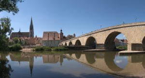 Steinerne Brücke: Neben dem Regensburger Dom ist sie das bedeutendste Wahrzeichen der Stadt: die Steinerne Brücke, ein Meisterwerk der mittelalterlichen Baukunst in Deutschland, das vermutlich in den Jahren 1135 – 1146 entstand. In steinernen Rundbögen überspannt das beeindruckende Bauwerk auf ca. 300 Metern die Donau. Ein Muss bei einem Regensburg-Besuch: ein Spaziergang von der historischen Altstadt über die Donau, vorbei am „Bruckmandl“, das den Scheitel der Brücke ziert, in den idyllischen Stadtteil Stadtamhof.