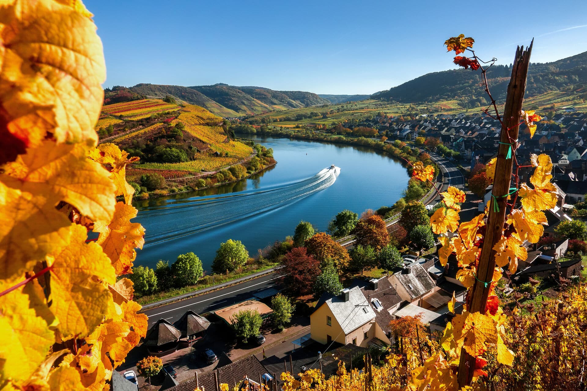 Herbstzeit ist Weinlesezeit – und am schönsten erlebt man diese Jahreszeit an der Mosel. Der Moselsteig führt von Perl nach Koblenz über farbenfrohe Weinberge und durch bunte Wälder, und immer wieder bieten sich tolle Aussichten ins Moseltal. Der Steig im ältesten Weinanbaugebiet Deutschlands ist dabei sehr abwechslungsreich: mal geht es auf breiten Wanderwegen gemütlich geradeaus, mal winden sich schmale Pfade durch die herrlich bunten Weinberge.