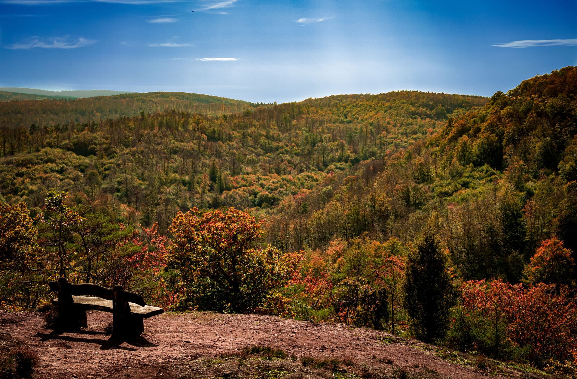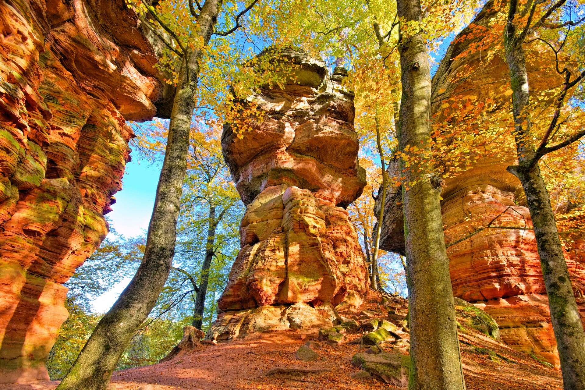 Der Pfälzerwald ist das größte zusammenhängende Waldgebiet Deutschlands – und somit ein „Muss“ für eine Herbstwanderung! Bei Kaiserslautern beginnend windet sich der Pfälzer Waldpfad durch unberührte Wälder bis zum Deutschen Weintor in Schweigen-Rechtenbach und bietet dabei naturbelassene Wälder, herrliche Fernsichten über den Pfälzerwald, Felsenriffe und Täler. Besonders beeindruckend ist auch der Abstecher ins Dahner Felsenland.
