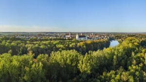4. Etappe: Dillingen – Höchstädt (10 km): Der Wechsel zwischen Wald und Wiese prägt die vierte Etappe des DonAUwald-Wanderweges. Seerosen bedecken die ehemaligen Kiesweiher. Der Aufstieg auf die „Leite“ wird mit einem herrlichen Weitblick über den mächtigen Auwald belohnt. Weiter geht es am Damm und an Altwässern entlang bis zur mächtigen Staustufe, auf der man die Donau quert. Höchstädt bietet eine sehenswerte Altstadt sowie ein Renaissance-Schloss und das Museum Deutscher Fayencen.
