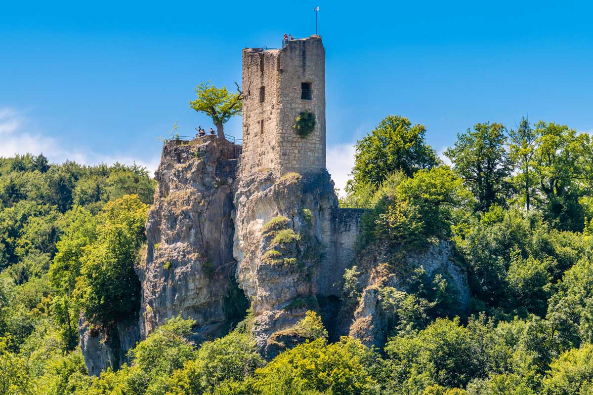 Hinter Heiligenstadt geht es wieder auf die Hochfläche der Frankenalb. Am Aussichtspunkt Hummerstein kann man sowohl ins Wiesenttal als auch ins Leinleitertal hinunterblicken. Zwei Wahrzeichen der Fränkischen Schweiz, die Burgruinen Streitburg und Neideck, warten im Örtchen Streitberg. Es folgt die Binghöhle in der zentralen Fränkischen Schweiz, eine Tropfsteinhöhle am Steilhang des Schauertales, die mit vielfältigen Tropfsteinformationen beeindruckt. Gößweinstein ist nicht nur wegen der Wallfahrtsbasilika Zur Heiligen Dreifaltigkeit sehenswert. Die Burg Pottenstein begeistert mit Rittersaal, Rotem Salon und dem Elisabethzimmer sowie der reich verzierten Kunigundekirche. Auch die nahegelegene Teufelshöhle ist einen Abstecher wert, eine der größten begehbaren Tropfsteinhöhlen Deutschlands. Der schöne Luftkurort Egloffstein zeichnet sich durch eine über der Ortschaft thronende Burg sowie mehrere hübsche Brücken aus.