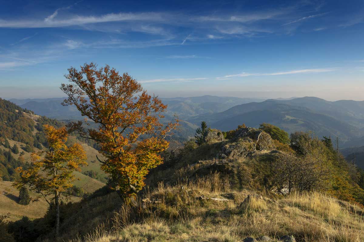 5. Etappe: Alexanderschanze – Hark (17 km): Am oberen Rand des Renchtals hat man einen schönen Blick auf Bad Griesbach und die Schwarzwaldberge um den Mooskopf. Bequeme Forstwege bringen den Wanderer zum Etappenziel Hark.