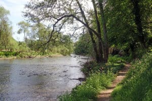 Der Wiedweg führt auf rund 110 km von der Quelle der Wied an der Westerwälder Seeenplatte bis zur Mündung am Rhein in Neuwied und bietet eine erlebnisreiche Wanderung mit reizvollen Aussichten.