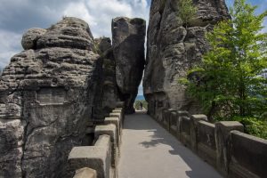 Die Wanderung führt weiter an klaren Bergbächen und Flüssen entlang, die sich ihren Weg durch das Sandsteingebirge bahnen, und verläuft schließlich auch an der berühmtesten Felsformation der Sächsischen Schweiz vorbei: Durch die Bastei führt eine lange Brücke, die zum Verweilen einlädt und eine einmalige Aussicht über die Landschaft sowie einen beeindruckenden Blick auf die Felsenburg Neurathen und die Felsformation Lilienstein ermöglicht. Über der tschechischen Grenze geht es an der Elbe entlang und und danach wieder zurück nach Pirna. Auf den 400 km langen Wanderwegen im Nationalpark Sächsische Schweiz lernt man einen einmaligen Lebensraum für seltene Pflanzen und Tiere kennen, weswegen die ausgeschilderten Wege nicht verlassen werden dürfen, um den wertvollen Lebensraum zu schützen.