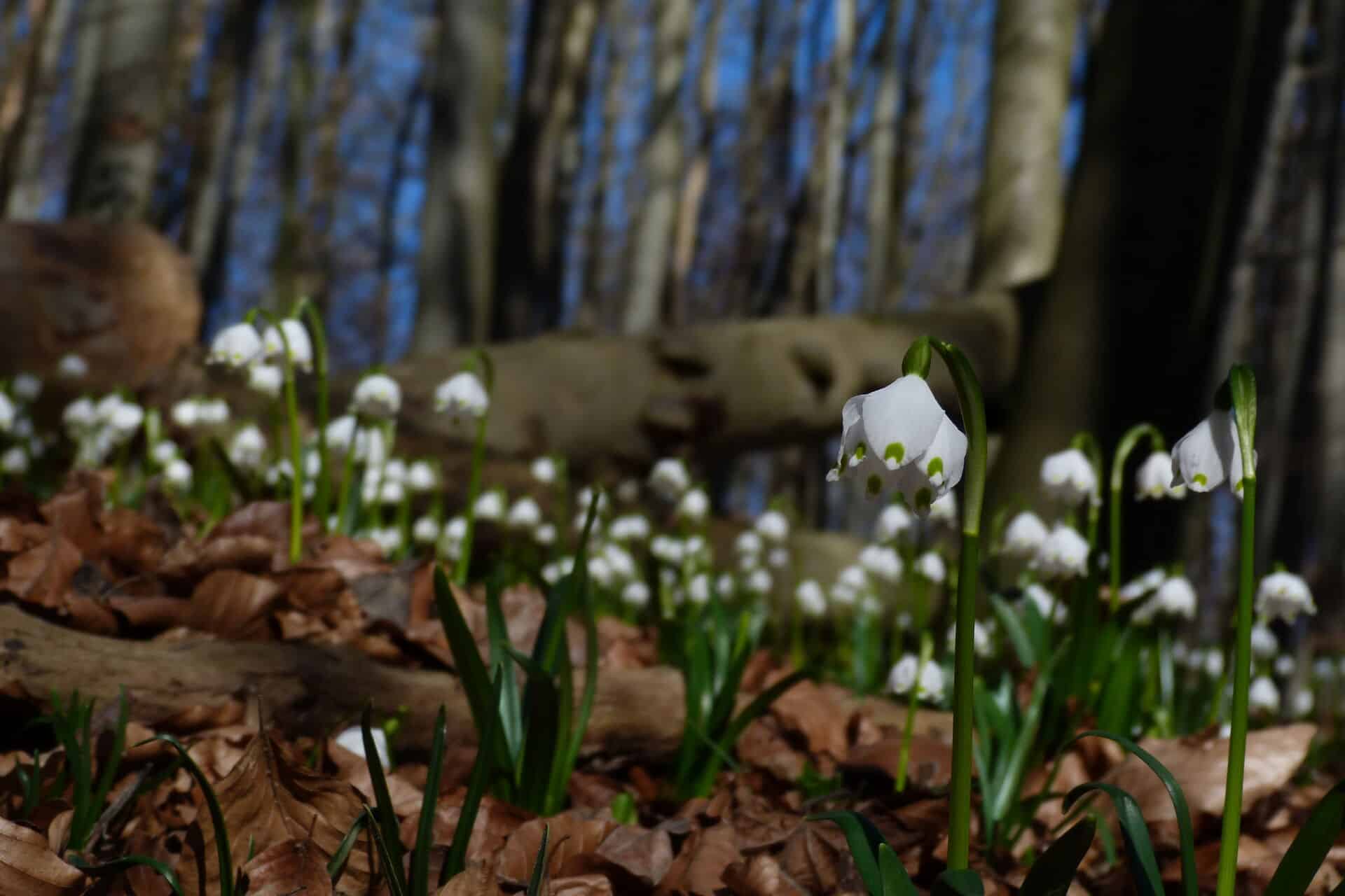 Neben dem Schneeglöckchen ist er einer der ersten Frühlingsboten, der bereits ab Ende Februar die Waldböden bevölkert: der Märzenbecher mit seinen filigranen weißen Blüten. Bis April kann man die weißen Frühlingsboten bei Wanderungen an verschiedenen Orten in Deutschland bewundern – besonders schön ist ein Frühjahrspaziergang im Nationalpark Hainich im Thüringer Wald. Auf dem kurzen, aber abwechslungsreichen Naturpfad Thiemsburg gibt es nicht nur Märzenbecherteppiche zu bewundern, sondern auch artenreichen Laubmischwald, historische Grenzsteine, der Steingraben mit prächtigen Mäandern und interessante Baumformen.