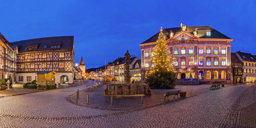 Auf dem Gengenbacher Adventsmarkt duftet es in der Vorweihnachtszeit nach süßem Honig, Zimt, aromatischem Glühwein, leckerem Flammenkuchen und vielem mehr. An vielen Ständen in der romantischen Altstadt gibt es feines Kunsthandwerk, lokale Spezialitäten, kulinarische Köstlichkeiten und zahlreiche Geschenkideen zu kaufen. Das Highlight des Gengenbacher Adventsmarktes ist jedoch der Gengenbacher Adventskalender: Bereits seit über zwanzig Jahren verwandelt sich das Gengenbacher Rathaus mit seinen 24 Fenstern in das weltgrößte Adventskalenderhaus. Dieses Jahr erstrahlen Bilder von Olaf Hajek in den 24 Türchen. Der Gengenbacher Adventsmarkt mit Adventskalender ist geöffnet vom 28.11. bis 23.12.2025, Mo-Fr 14.00 – 20.00 Uhr, Sa+So 11.30 – 20.00 Uhr. www.gengenbach.info