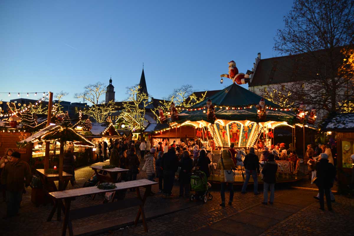 Liebevoll dekorierte Holzbuden entlang gemütlicher Gassen und der verführerische Duft von Bratäpfeln und Glühwein verleihen dem Ingolstädter Christkindlmarkt auf dem Theaterplatz eine anheimelnde Atmosphäre. Den Ingolstädter Christkindlmarkt gibt es nachweislich seit 1570 und er ist damit nicht nur einer der ältesten, sondern sicher auch einer der schönsten in Bayern. Die Holzbuden mit ihrem weihnachtlichen Angebot und die Märchenhütten für die Kinder ziehen sich vom Herzogskasten bis hin zum Neuen Schloss am Paradeplatz. Auf dem Ingolstädter Krippenweg kann man Kostbarkeiten einer alten Tradition entdecken, die hier, wie kaum anderswo, sichtbar wird. Der Christkindlmarkt Ingolstadt findet statt vom 25.11. bis 22.12.2025, So-Do 10.00 – 20.00 Uhr, Fr+Sa 10.00 – 21.00 Uhr. www.christkindlmarkt-ingolstadt.de