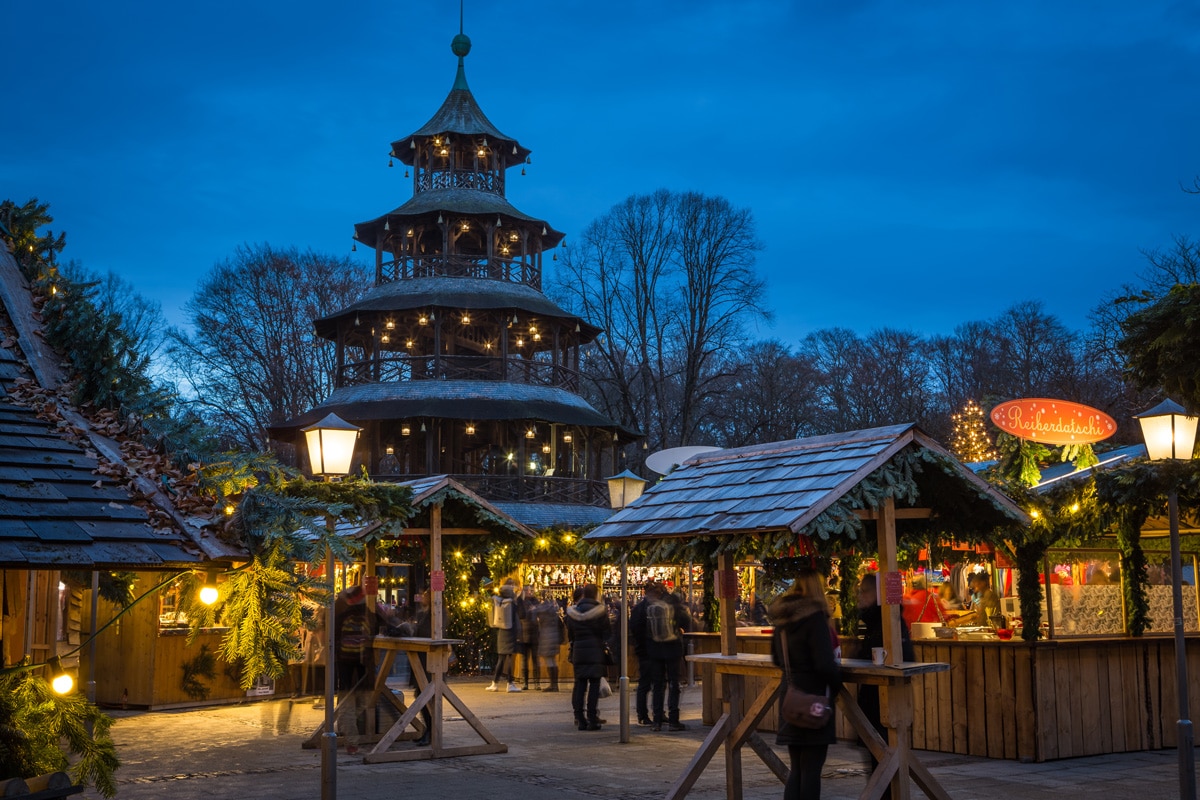 Der romantischste Weihnachtsmarkt Münchens verbirgt sich im Englischen Garten: Rund um den Chinesischen Turm warten liebevoll eingerichtete Holzhäuschen, ein historisches Kinderkarussell aus Holz, ein Münchener Kutschgespann sowie mehrere Eissportbahnen auf die Besucher. Angeboten werden hochwertige, traditionelle Handarbeit und Handwerkskunst sowie kulinarische Köstlichkeiten von süß bis herzhaft. Toll sind das romantische Park-Ambiente und die entspannte Atmosphäre. Der Weihnachtsmarkt am Chinesischen Turm hat geöffnet vom 20.11 bis 23.12.2025, Mi-Fr von 11.30 bis 20.30 Uhr, Sa+So 11.00 bis 20.30 Uhr. weihnachtsmarkt-chinaturm.de