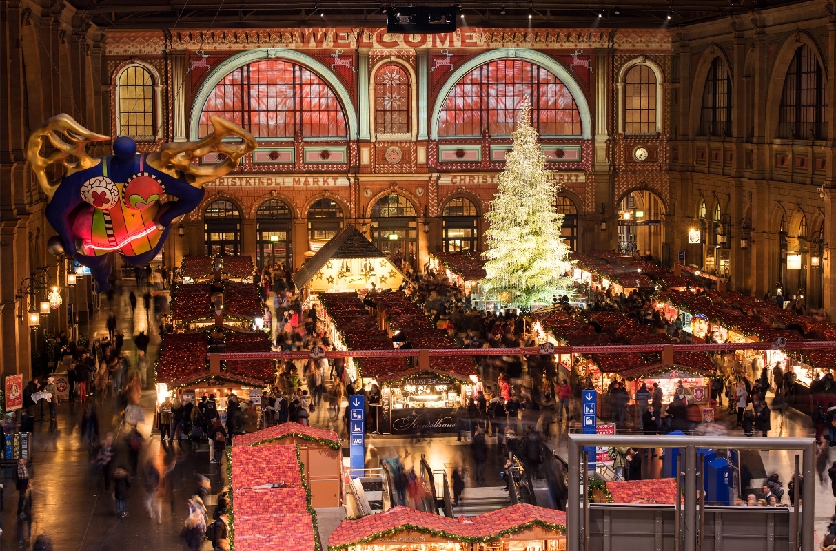 3. Zürcher Polarzauber im Hauptbahnhof: Einen der größten Indoor-Weihnachtsmärkte Europas kann man im Züricher Hauptbahnhof bestaunen; über 100 Marktstände finden hier Platz. Besonderes Glanzstück ist der 15 Meter hohe, mit Lindor-Kugeln geschmückte Weihnachtsbaum, umgeben von einer liebevoll gestalteten Miniatur-Winterwelt mit Teddybärenzug. Durch die Bahnhofshalle weht der Duft nach klassischen Weihnachtsmarktleckereien wie Fondue, Glühwein oder Crêpes. Geöffnet ist der Polarzauber im Zürcher Hauptbahnhof vom 20.11. bis 24.12.2025, Sonntag – Mittwoch 11.00 – 21.00 Uhr, Donnerstag bis Samstag 11.00 – 22.00 Uhr, 24.12. 11.00 – 16.00 Uhr. polarzauber.ch