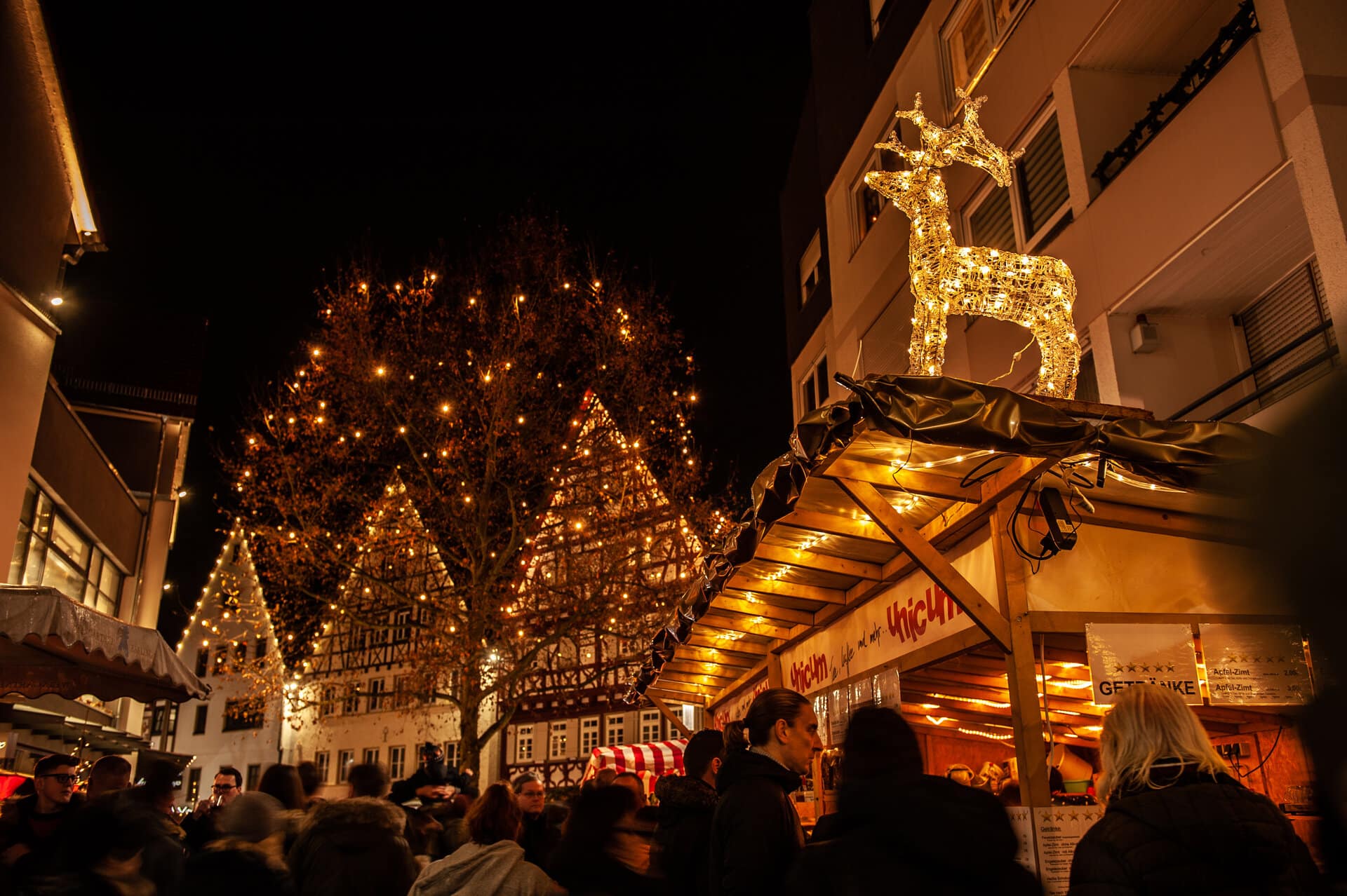 Vor der prächtigen Kulisse der historischen Fachwerkhäuser in der Innenstadt findet der Nagolder Weihnachtsmarkt am zweiten Adventswochenende (5.-7. Dezember 2025) statt. Der beliebte Treffpunkt für Jung und Alt am Ostrand des nördlichen Schwarzwalds bietet weihnachtlich geschmückte Markthütten mit rund 80 Ausstellern, an denen man kreative Weihnachtsdekoration für Zuhause, Schönes zum Verschenken oder Selbstbehalten und allerlei Kulinarisches von süß bis salzig erstehen kann. Der Duft von gebrannten Mandeln, würzigem Glühwein und Punsch liegt in der Luft und sorgt für die gemütliche Atmosphäre des Nagolder Weihnachtsmarktes. www.nagold.de