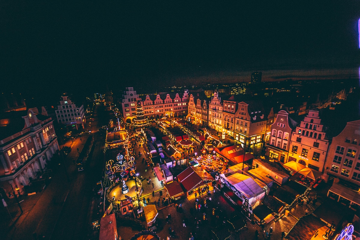 Der Rostocker Weihnachtsmarkt ist der größte Norddeutschlands und wartet mit vielen Attraktionen auf. Besondere Highlights sind verschiedene Karussells und Fahrgeschäfte, ein 40 Meter hohes Riesenrad und die größte begehbare Weihnachtspyramide der Welt.