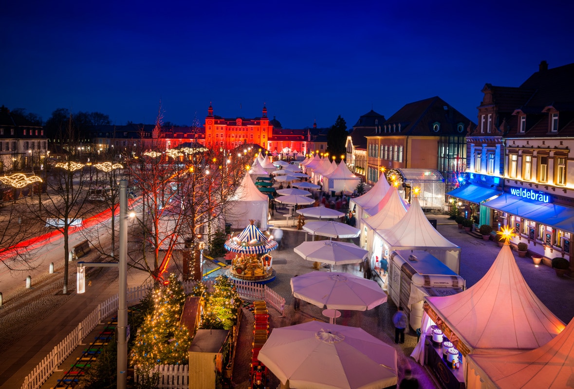 - Blick über den Weihnachtsmarkt Schwetzingen: © Stadt Schwetzingen / Foto: Tobias Schwerdt