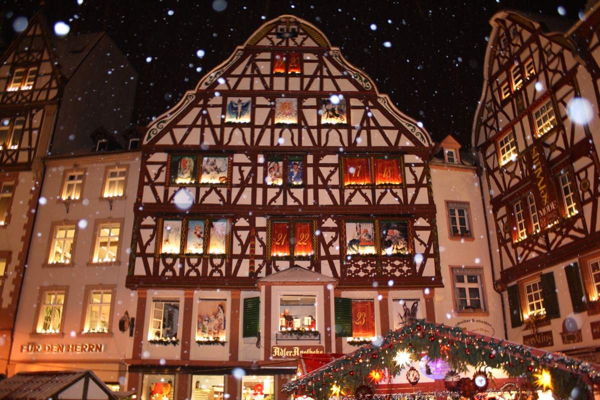 Kleine schmale Gassen, festlich geschmückte Plätze und Schaufenster, jahrhundertealtes Fachwerk – das macht den Weihnachtsmarkt Bernkastel-Kues in der Altstadt zu einem besonderen Erlebnis.