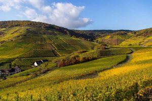 Freunde edlen Rebensafts lockt ein deutsches Weinbaugebiet im malerischen Ahrtal in den Norden von Rheinland-Pfalz: Zwischen den beliebten Winzer- und Fremdenverkehrsorten Altenahr und Heimersheim erstreckt sich mit dem Weinbaugebiet Ahr nicht nur das nördlichste Rebengebiet, sondern auch das größte geschlossene Anbaugebiet für Rotweine in Deutschland. Über etwa 85 km windet sich die Ahr in engen Schleifen durch eindrucksvolle Felslandschaften mit üppigen Weinhängen. Urkundlich verbrieft ist der Weinbau im Ahrtal im 9. Jahrhundert, doch die ersten Reben pflanzten wahrscheinlich bereits die Römer an. Das traditionsreiche Erbe der Region in windgeschützter Lage mit vielen Sonnenstunden wiegt schwer; die Trauben an den Steilhängen sind nur in mühevoller Arbeit zu ernten, doch dafür werden die Winzer mit erstklassigen Rotweinen belohnt.