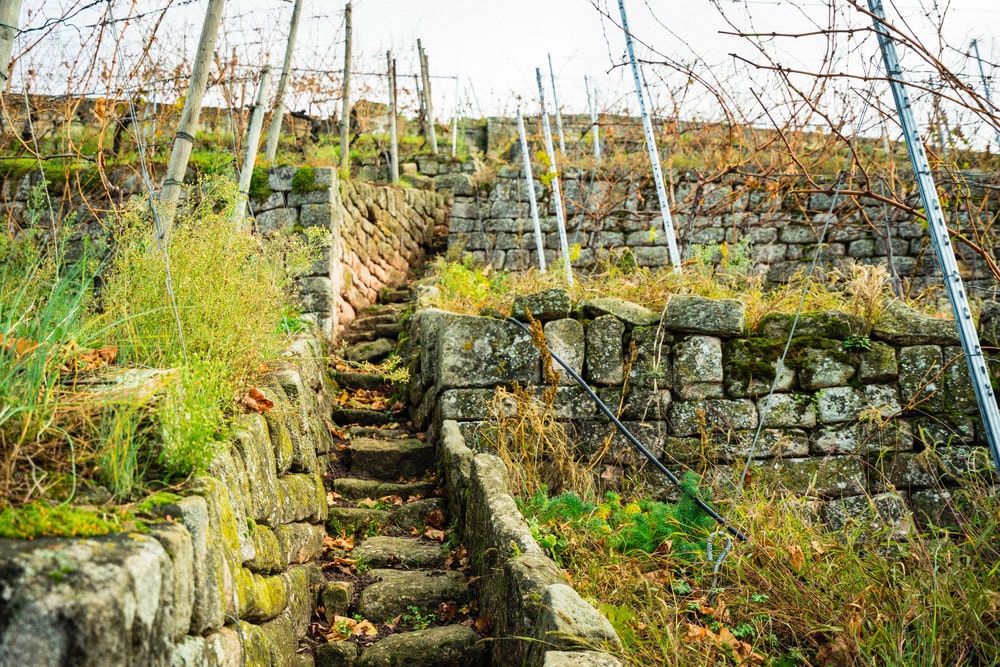 Wir haben Müller-Thurgau, Riesling, Cabernet Blanc, Muscaris, Trollinger, Lemberger und Merlot. Unsere Passion sind terrassierte Steillagen. Keine maschinelle Unterstützung. Diese Weine haben Hand und Fuß.