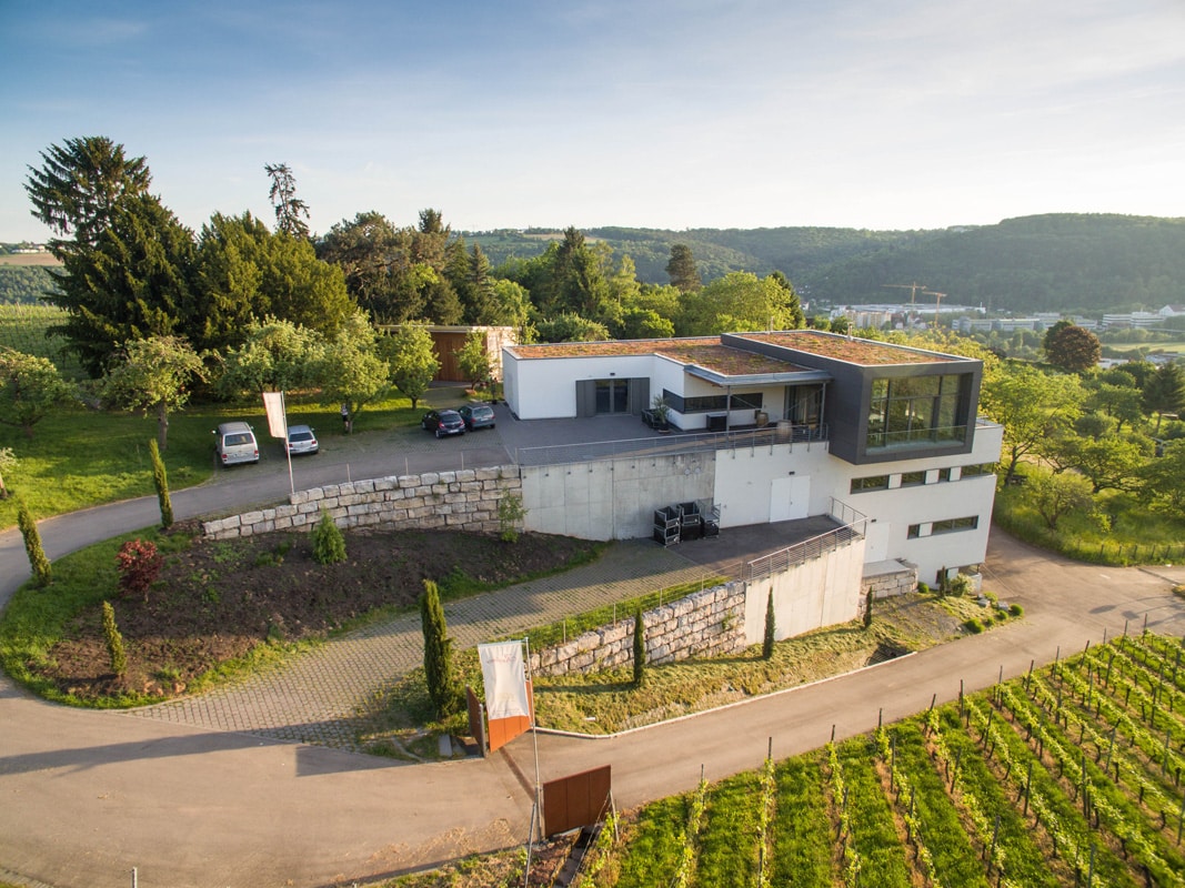 Die knapp 6 Hektar Weinberge des Weinguts befinden sich in den um das Jahr 1200 angelegten Terrassen des Esslinger Schenkenberg sowie in der kleinsten Einzellage Württembergs, der Esslinger Neckarhalde. Die wichtigsten Rebsorten sind Lemberger, Spätburgunder und Riesling, gefolgt von Merlot, Zweigelt, Trollinger und Muskattrollinger. Hinzu kommen Grauburgunder und Chardonnay sowie ein wenig Silvaner. Zuletzt wurde ein klein wenig Cabernet Franc gepflanzt, in Zukunft soll noch mehr Chardonnay angepflanzt werden, auch weil man die Sekterzeugung forcieren möchte.