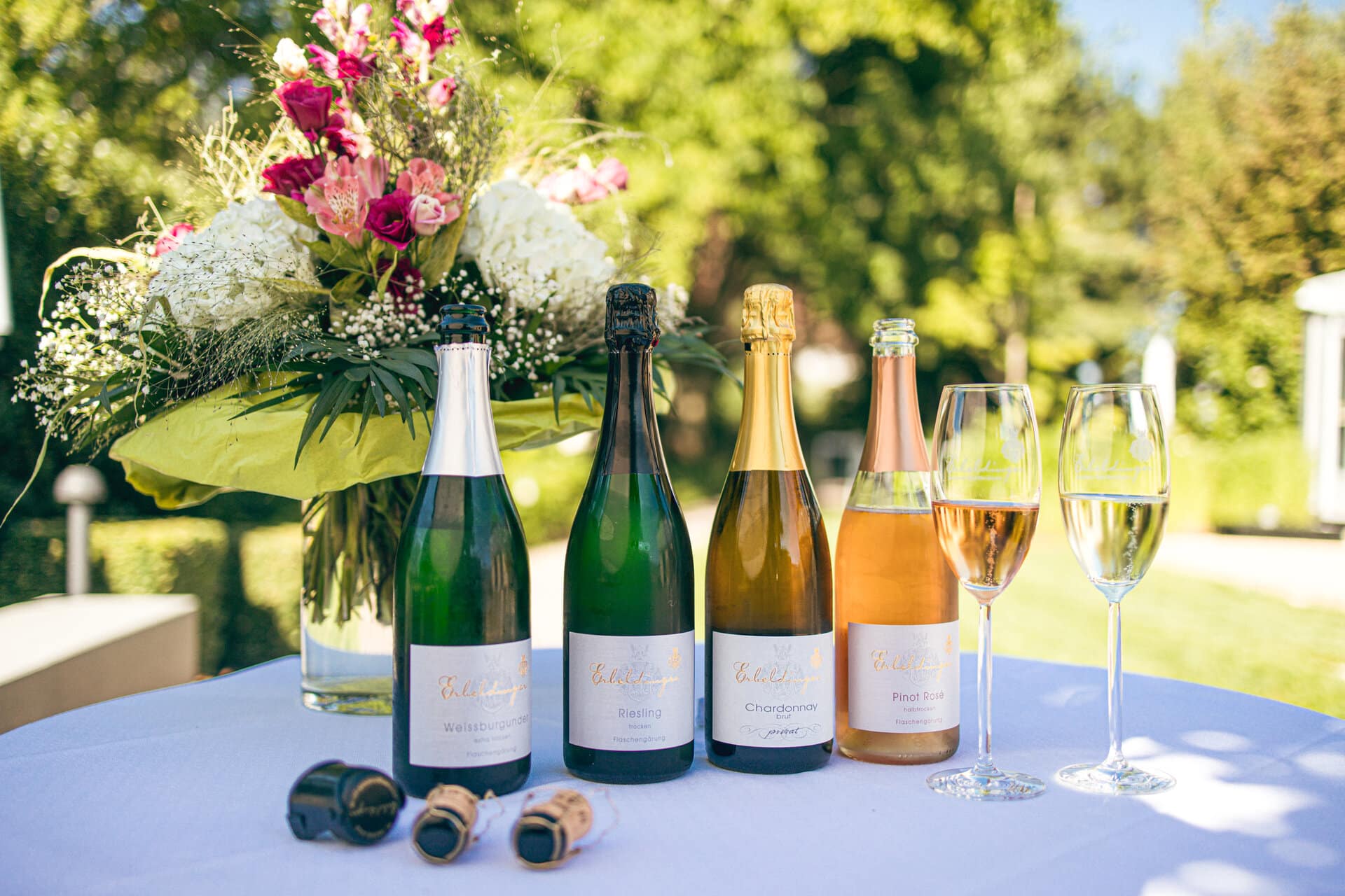 Das Angebot an Weinen des Weinguts Erbeldinger ist vielseitig – probieren und erwerben kann man verschiedene Weiß- und Rotweine, Sekte und Roséweine sowie eine attraktive Auswahl an alkoholfreiem Traubensaft und Traubensecco. Die Weißweinauswahl ist so groß, dass für jeden der passende Tropfen dabei ist: Aufgrund der Boden- und Lagenvielfalt kann das Weingut Erbeldinger sehr viele verschiedene Rebsorten anbauen. Die Auswahl reicht von vom Riesling bis zum Weißen Burgunder, von der Huxelrebe über den Gelben Muskateller bis zur Scheurebe. Beim Rotwein legt das Weingut besonderen Wert auf die heimischen Rebsorten wie Dornfelder, Portugieser, St. Laurent und Spätburgunder. Aber auch internationale Rebsorten wie Syrah und Cabernet Franc hat man im Angebot.