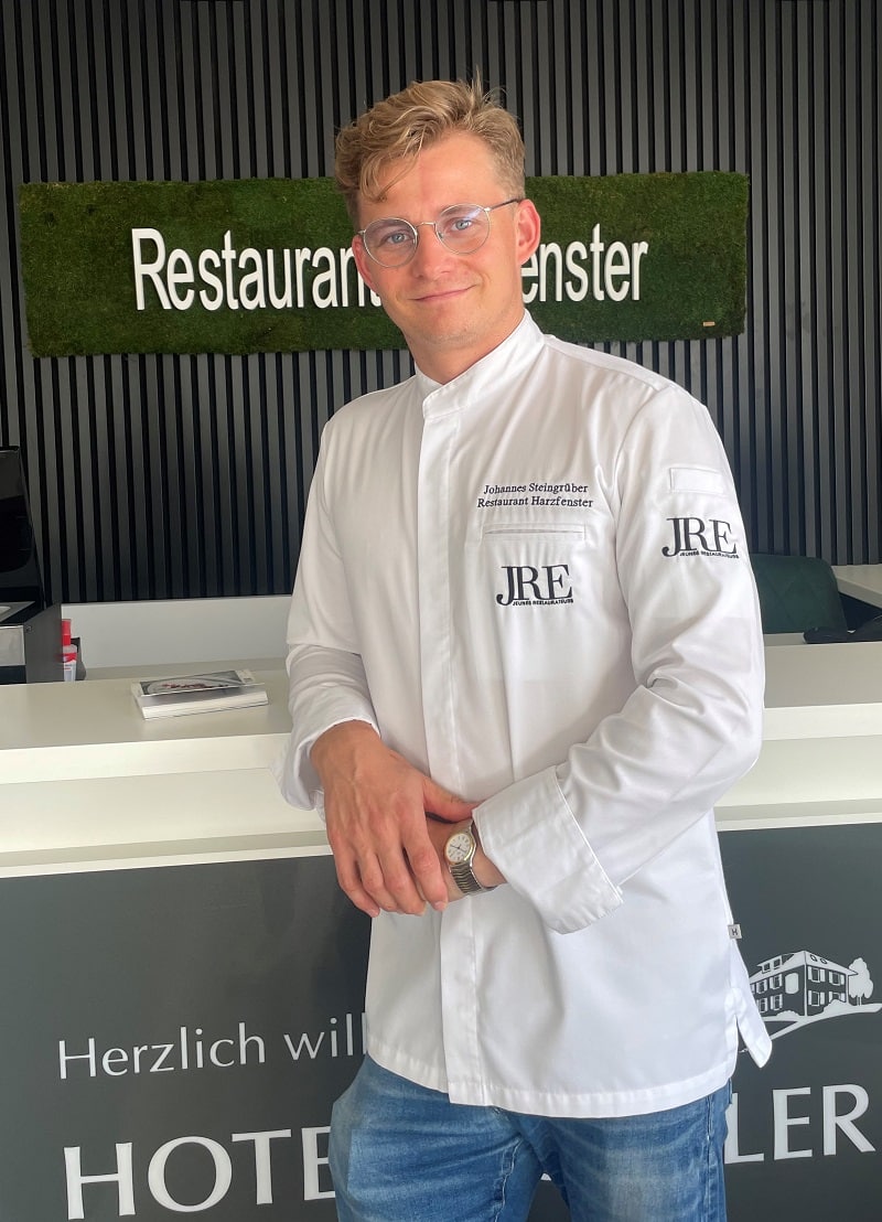 Johannes Steingrüber absolvierte seine Ausbildung zum Koch im Landhaus „Zu den Rothen Forellen“ und arbeitete danach an renommierten Stationen wie das Restaurant „Falco“ in Leipzig, im Restaurant „YOSO“ unter Sarah Henke, im Restaurant „An der Wasserburg“ in Wolfsburg sowie im Restaurant Storstad unter Anton Schmaus in Regensburg. Seit 2021 ist er Küchenchef im Restaurant Harzfenster in Seesen und ist somit in den elterlichen Betrieb zurückgekehrt. Hier kocht er kreativ, raffiniert und modern. Er steht für klare Geschmackslinien, intensive Aromen und erstklassige Produktqualität.