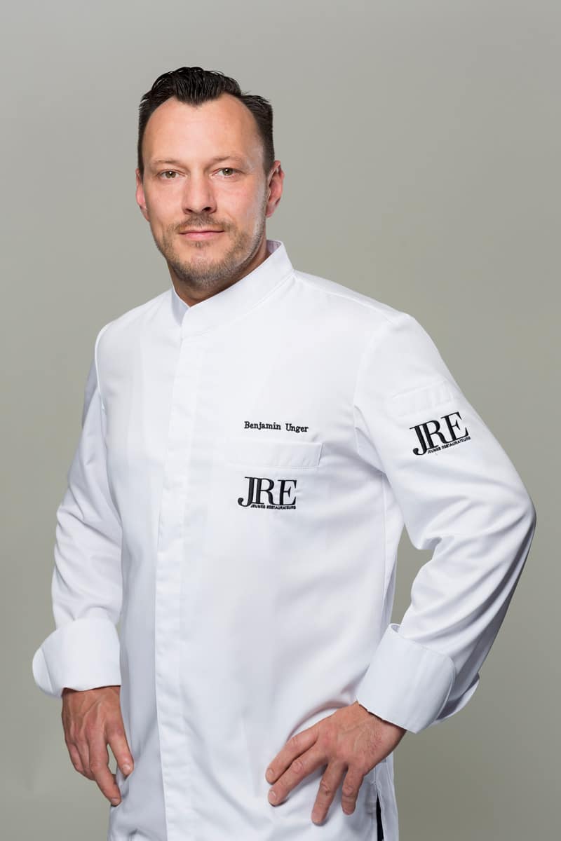 Benjamin Unger leitet seit 2005 die Geschicke des Hauses und der Küche des elterlichen Betriebes Hotel Blauer Engel in Aue. Auf seinen Wanderjahren durch die Spitzengastronomie verschlug es ihn unter anderem nach Dresden in die Bülow Residenz, in das Hotel Dollenberg, in das Schloss Loersfeld, in das Hotel Hohenhaus und das Vendôme. Seine Küche zeichnet sich durch die Verbindung von Tradition und Innovation sowie durch den Einsatz von hochwertigen Produkten und Rohstoffen der Region aus.