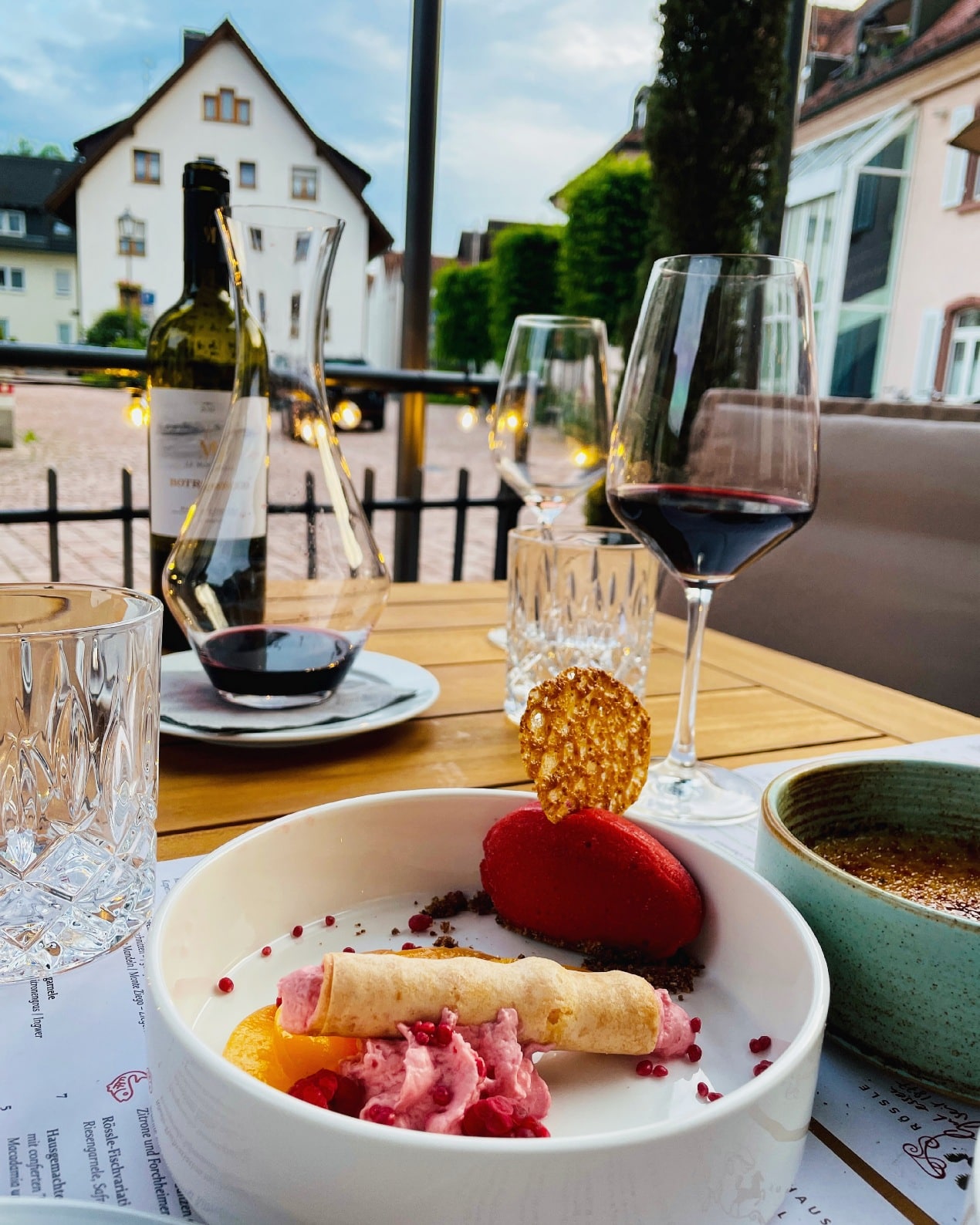 Feinste Gaumenfreude für Kenner und Genießer! Ankommen, Platz nehmen, glücklich sein! Die moderne, klassische Küche von Frederik Desch zeigt sich seit Jahren auf beständig hohem Niveau. Thomas Hüttl kümmert sich mit Leidenschaft und Engagement um das Wohl der Gäste. Bei schönem Wetter sitzt man idyllisch auf der neugestalteten Gourmetterrasse. Hier zu tafeln ist immer ein ganz besonderes Erlebnis…