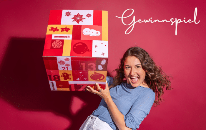 Mach mit bei unserem Gewinnspiel und gewinne jetzt einen Müsli-Adventskalender mit 24 verschiedenen Bio-Müslis oder eine von vier Müsli-Geschenkboxen mit je 6 Xmas-Mini-Müslis in 3 leckeren Sorten!