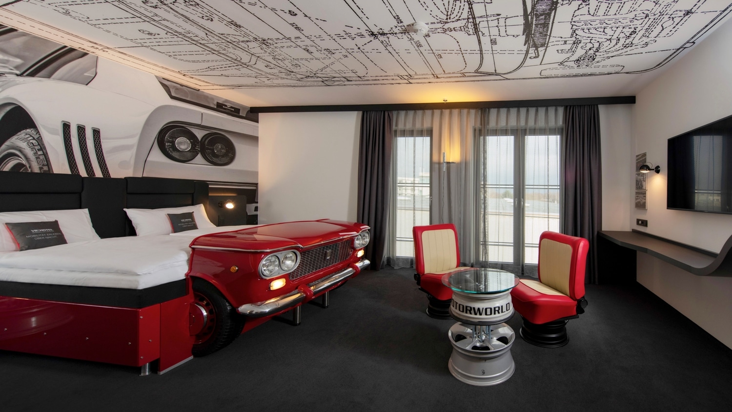 Das V8 Hotel ist ganz dem Thema Mobilität gewidmet. 98 Designzimmer, 8 Themenzimmer und 5 Carsuites mit gläserner Garage für den eigenen Wagen lassen das Herz eines jeden Motorsportfreundes höher schlagen. Erleben Sie das einmalige Ambiente und gewinnen Sie eine Übernachtung mit Frühstück für 2 Personen.