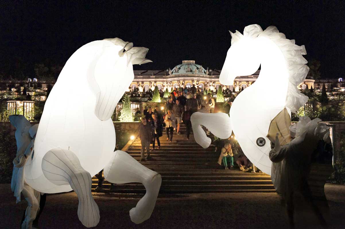 Bei der Potsdamer Schlössernacht wird dieses Jahr vielerorts eine exzentrische, elegante und ereignisreiche Wunderwelt geboten, die Grandezza und Extravaganz zur EXTRAVAGANZA vereint.
