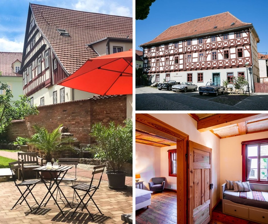 Das denkmalgeschützte Hotel Stadthaus Arnstadt befindet sich im Herzen der Bachstadt Arnstadt und besteht aus einem Fachwerkhaus von 1582 im Renaissancestil und einem Fabrikgebäude aus dem Jahr 1903. Wer hier übernachtet, befindet sich inmitten eines liebevoll über acht Jahre sanierten Gebäudes, das Geschichte atmet – vom gotischen Gewölbekeller über Fachwerkkunst der Renaissance und barocken Stuck aus Italien bis hin zum zeitlosen Lehmbau. Im Fabrikgebäude war über 100 Jahre eine Handschuhfabrik untergebracht, nach der Wende verfielen die Gebäude und erwachten erst 2013 nach aufwendiger Sanierung wieder zu neuem Leben. Eingesetzt wurden traditionelle Materialien wie Holz, Lehm, Kalk und Leinölfarben, wo es möglich war wurde die alte Bausubstanz erhalten. Heute verfügt das Hotel über sechs Zimmer und eine Ferienwohnung im Fachwerkhaus, eine zweite Ferienwohnung befindet sich im ehemaligen Fabrikgebäude. 2013 erhielt das Hotel den Thüringer Denkmalschutzpreis.