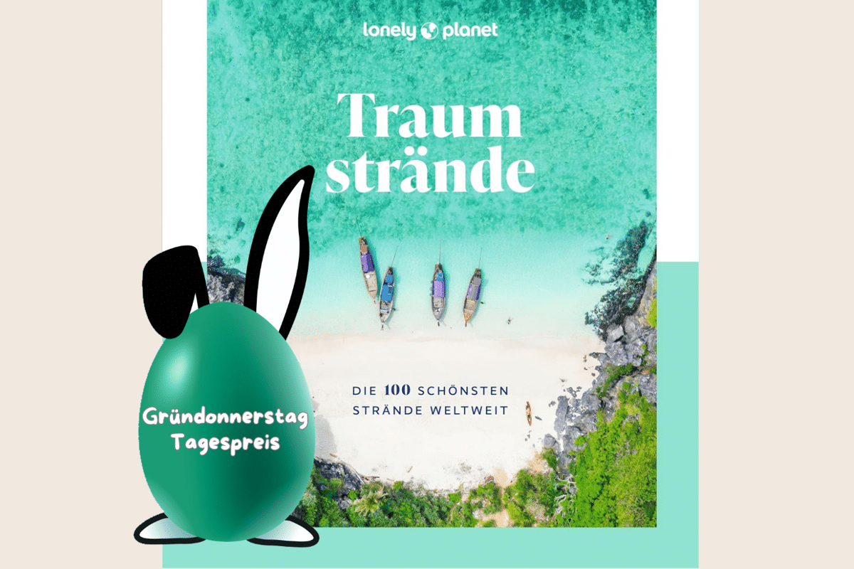 Wir verlosen 5 Exemplare der wunderbaren Lonely-Planet-Buchausgabe „Traumstrände – die 100 schönsten Strände weltweit“. Dieses inspirierende Reisebuch nimmt dich mit zu den spektakulärsten Küstenabschnitten unseres Planeten – von versteckten Paradiesen bis zu ikonischen Traumzielen, die jeder einmal gesehen haben sollte.
