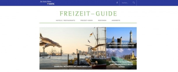 „Mit dem ‚Freizeit-Guide‘ haben wir den redaktionellen Inhalt auf www.varta-guide.de weiter ausgebaut und bieten den Lesern viel Mehrwert über unsere etablierten Hotellerie- und Gastronomie-Bewertungen hinaus“, sagt Marketingleiter Jürgen Reimsbach. „Die Mischung aus Lesevergnügen, optischer Inspiration und weiterführenden Infos zur konkreten Urlaubsplanung verführt zum Schmökern wie in einem guten Reisemagazin – lebendig, aktuell und kontinuierlich erweiterbar, wie es nur ein Internet-Magazin möglich macht.“