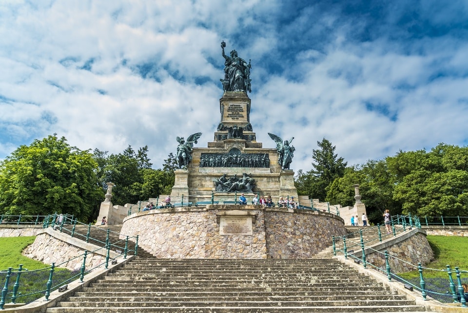 In Rüdesheim ragt ein monumentales Bauwerk 38 Meter in die Höhe: das Niederwalddenkmal. Das Bauwerk wurde anlässlich der Gründung des ersten vereinten deutschen Staates errichtet. Wichtigste Symbolfigur dabei ist die Germania, die auf der Spitze des Denkmals thront. Bereits seit der Antike steht sie stellvertretend für die germanischen Völker. 1883 wurde das Denkmal eingeweiht und der Bau kostete schon damals eine Million Reichsmark. Bereits nach kurzer Zeit entwickelte sich das Bauwerk zu einem beliebten Ausflugsziel. Um den Touristenmassen Herr zu werden, wurde 1884 die Niederwaldbahn gebaut, die jedoch durch den Zweiten Weltkrieg ihr Ende fand. 1952 wurde stattdessen eine Seilbahn mit Gondeln installiert, die bis heute noch in Betrieb ist.